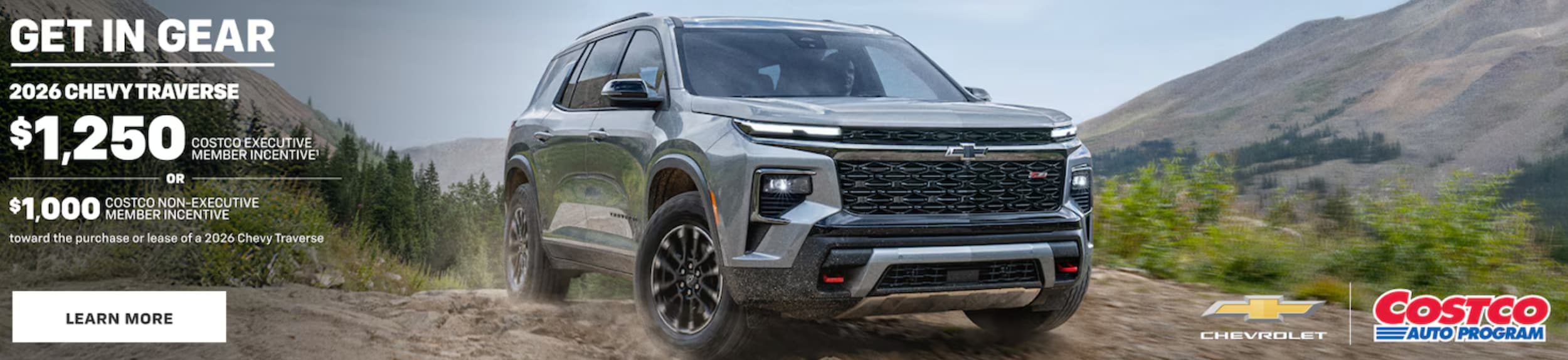 Disclaimer: 1.To qualify for the GM Limited-Time Special, you must: (1) be a current Costco Member by January 2, 2026; (2) register with Costco Auto Program online or through its call center by March 2, 2026, to receive a certificate with your unique promotion code; (3) present your certificate and unique promotion code to any Chevrolet dealer at time of visit; (4) take delivery between January 3, 2026, and March 2, 2026, of a new 2025, 2026 Chevrolet Traverse to receive a $1,000 Non-Executive Costco member-only incentive or $1,250 Executive Costco member-only incentive. Incentive will be applied at time of eligible purchase or lease and is compatible with current eligible manufacturer incentives for which you qualify. Incentive is subject to change due to vehicle inventory availability. Visit CostcoAuto.com/GM for full details. Costco and its affiliates do not sell automobiles or negotiate individual transactions.