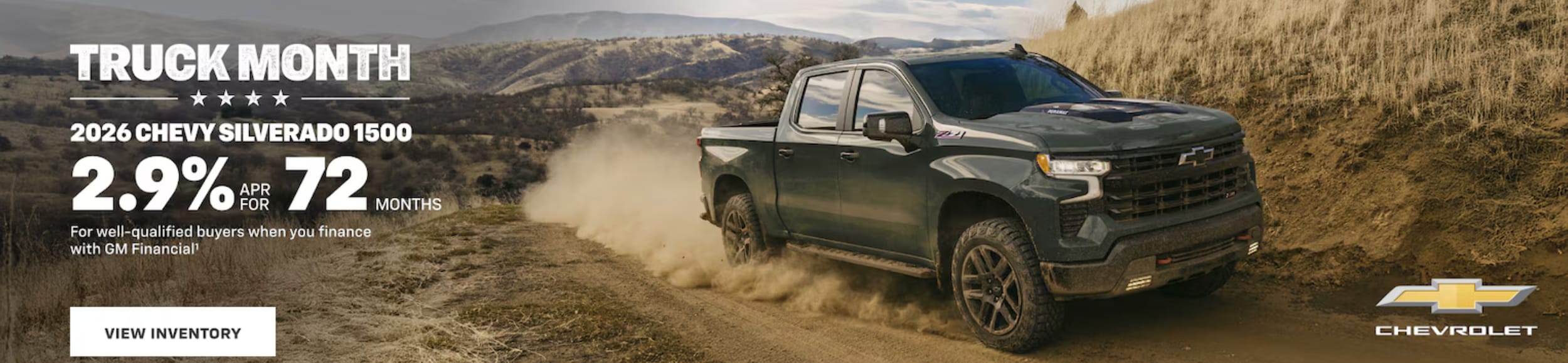 (1) 2.9% APR for 72 months. Monthly payment is $15.15 for every $1,000 you finance. Example down payment: 13.7%. Must finance with GM Financial. Down payment required at signing, if applicable. Some customers may not qualify. Not available with lease and some other offers. Take new retail delivery by 11/03/25.